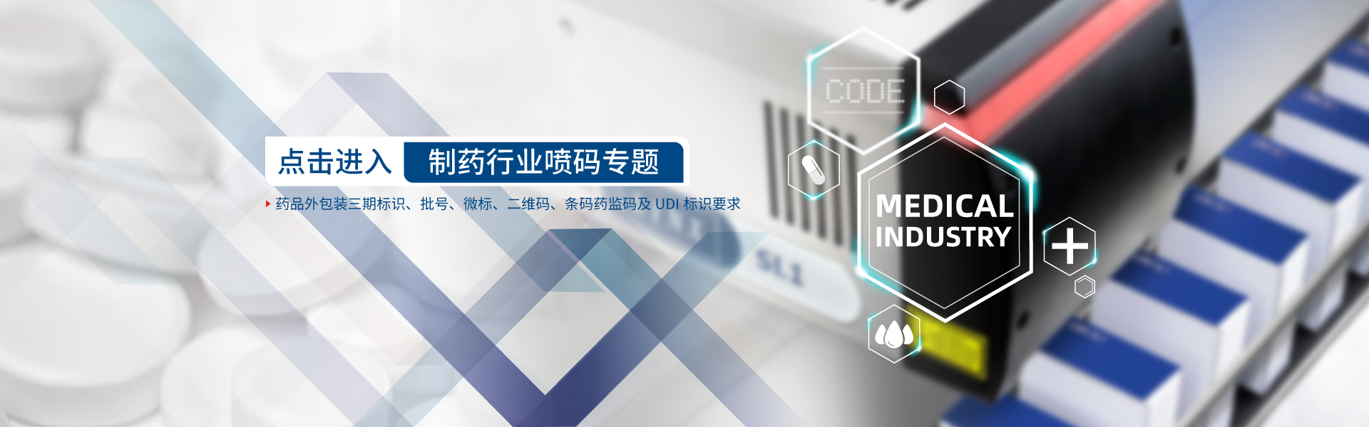 醫(yī)藥行業(yè)全面推行GMP認證,對于各種噴碼機設備以及包裝材料都有非常嚴格的標準,對于藥品的包裝要求高速潔凈。